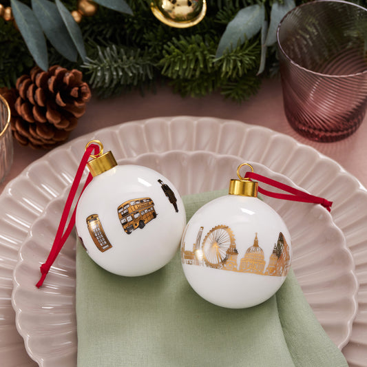 Our beautiful fine bone china baubles and hanging decorations are complete with...
