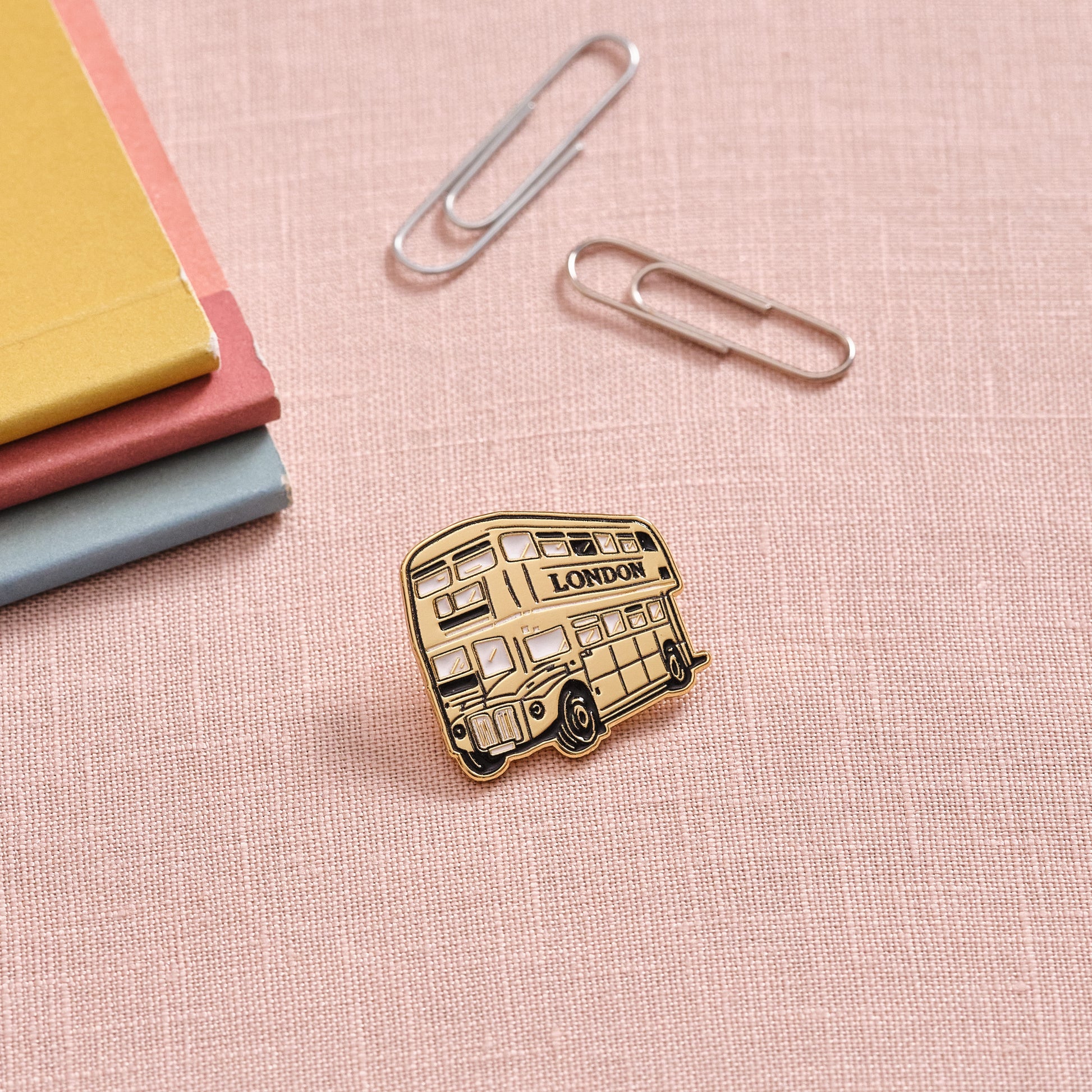 Add a special touch to your clothes or bags with this stunning gold London bus pin badge. This die struck pin has been enamelled by hand in the UK and is a loving tribute to the iconic Route-master bus. A lovely little gift or stocking filler.